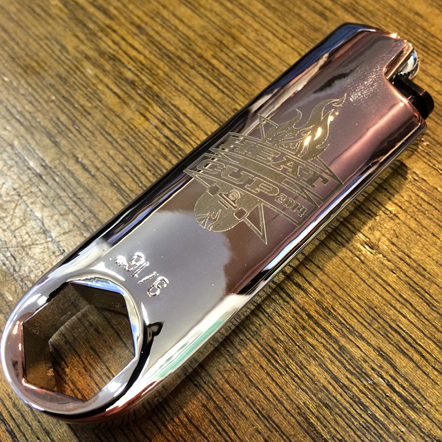 そして先日、横須賀で開催されたHEATCUPでライダーのみに渡されたBOLDLINEライターTOOLも頂きました。これマジうれしい。9/16インチっていうのがいいね。工具ですから。夏はTOOLを一番使うシーズンです。なぜってそれは夏は気温が高いから。ブッシュの素材的にやはり暑いと柔らかくなるのよ。夏の路面は40度を越える事もあるのでそいう時にはいつもよりもトラックがクニャクニャする感じがする。そこでこういうTOOLでキュっと締めて滑るのがなんか粋ではありませんか?ポケットから出してタバコに火をつけるついでにキュッとね。長くスケボー屋をやってますがサラッとそういう使い方できるのってこれだけですね。他にも大人なスケートボーダーにビッとくるアイテム色々あります。Tシャツも入荷してきました。こちらからチェックしてみてね。
