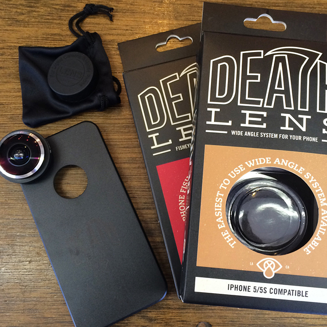 そしてこちらは話題のDEATH LENS。WIDEレンズ2,900円、フィッシュレンズ4,900円ながら、コスパかなりいい感じでスケート撮りに行けますよ。最近ではiphoneで撮ってそのままiphoneのimovieで編集してそのままSNSにアップ、とか普通のことになってきました。こういうレンズがあればより本格的な映像が撮れることと思います。箱にはiphone5用のケースとレンズが入ってます。ケースからレンズは取り外せますので付属のレンズの袋に入れて使うとき装着することも可能です。色々な使い方がイメージできますね。