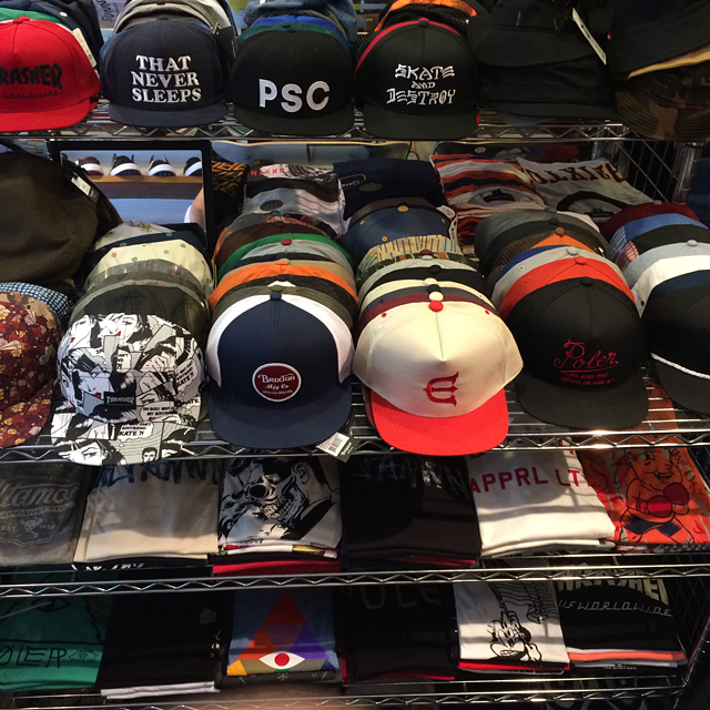梅雨が明ければ真夏です。スケートボーダー達の夏には必需品のキャップ類が色々と。ことしは5パネルやジェットキャップが人気ありますね。今が一番選べるタイミング。