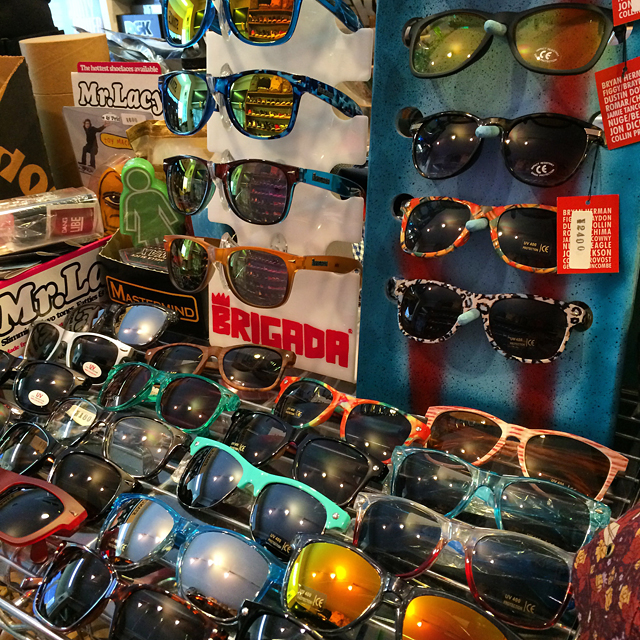 もうひとつの必需品がこのサングラス。数年前からプロライダーをサポートするサングラスメーカーで、いわゆるトイサングラスのジャンルで価格帯も1,900円~2,800円とスラムして潰してしまってもなんとか気持ちは折れない価格でご紹介させていただいております。最近では変更グラスを使ったモデルや木のフレームのモデルがあったりで色々選べるようになってきましたね。今シーズンはミラーレンズのモデルが人気で各メーカー沢山のカラーバリエーションがあります。店頭でも沢山ストックしておりますのでぜひチェックしに来てください。