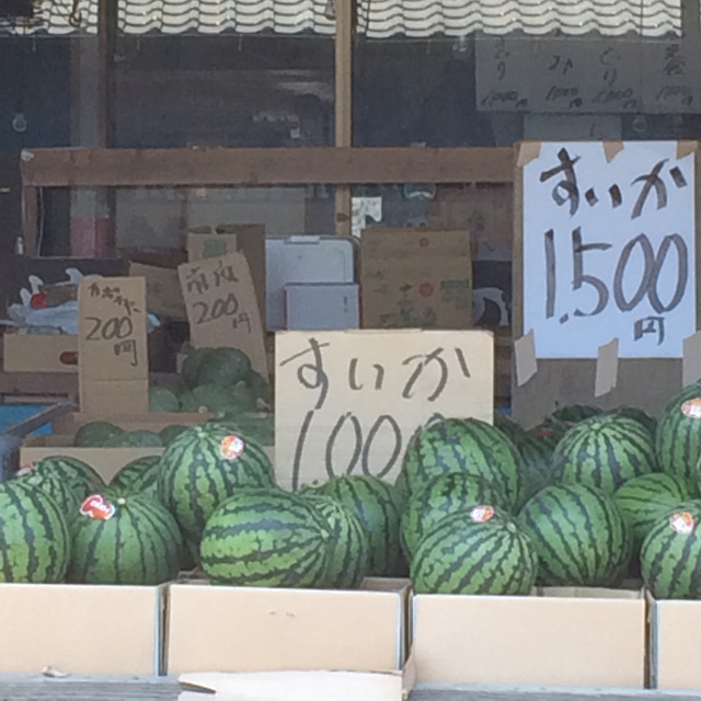 ガッツリ晴れた平日に、錦糸町の名店「おおむら」の若旦那のオザと、元STORMYの最強スタッフだった神長と九十九里にドライブに行ってきました。天気予報に反してものすっごくいい天気になっちゃって、男三人で夏を先取りしてきました。路面の八百屋は店先に山盛りのスイカ。千葉の富里はスイカの名産地ですっげーデッカイのが1500円、スーパーに並んでいる一番デカイくらいの大きさで1000円。おじさんとちょっと話したら1500円の大玉を1000円で売ってくれました。見切れてるところに積んであった新たまねぎがネット700円ですっげー入っていた。そっちも買えばよかった。って買い物に行った訳ではありません。