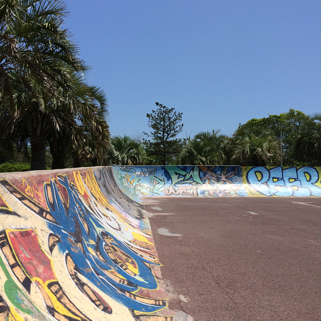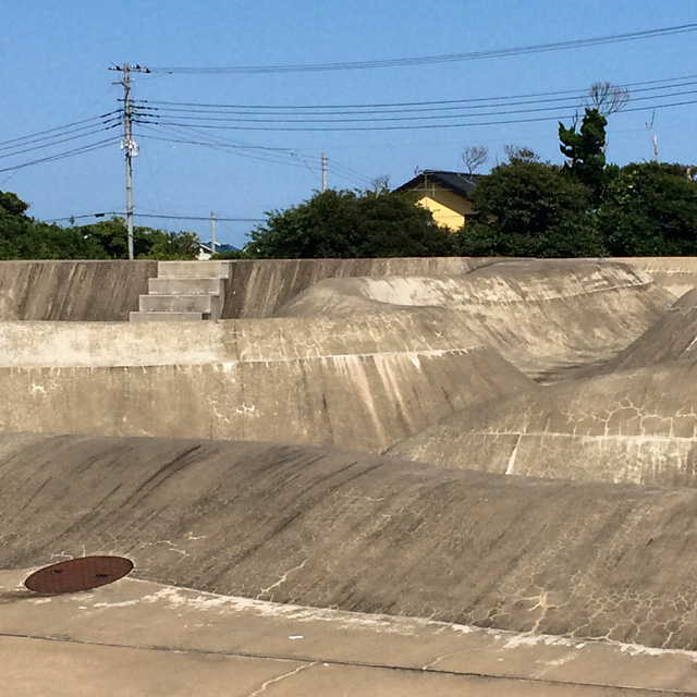 やっぱり蓮沼と言えばこれ。そう。路面の赤がウィールに着いちゃうのね。これは以前とまったく変わらない。もう足腰ガタガタなんでちょっと流しただけですがやっぱり赤くなりました。現在の蓮沼は津波で負ったダメージをローカルの皆さんが修復してしばらく経ち、補修箇所もクラック入って経年劣化の路面はもうかなりおろし金に近い感じ。コケたら転がるべし。ザーッとこけるとかなりリスキーです。でもやっぱりかなりミラクルな場所ですよ。ダイコンがADでトップにかけてた壁なんてマジはんぱないっすから。浦安のスーパーミニランプ好きの方は確実に攻められます。ぜひ。