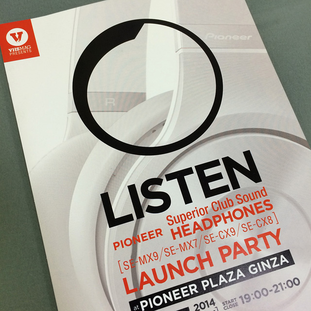 また先日、あまり足を踏み込まない銀座に行ってきました。このPIONEERの新作ヘッドフォンのリリースレセプションにお邪魔してきましたよ。VHSMAGの新作映像も観れて、ビールあってFOODあって、行ったらみんな知り合いで、BOLDLINEの堀内さんやタイミング合ったコヤちゃんも合流してくれて、すごく楽しい時間を過ごすことができました。新製品って気になるね。アンケート書くと抽選で当たるっていうのを真剣に書いてきました。使ってみたいし。当たりますように。