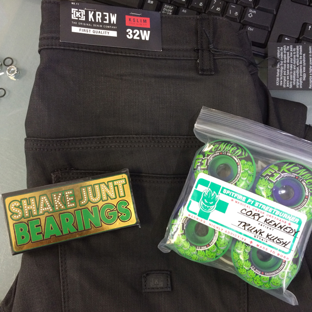 3日間でたくさん滑るだろうし気分を上げる為に、ウィールとベアリングを新しくしました!それとパンツも1本購入しました!