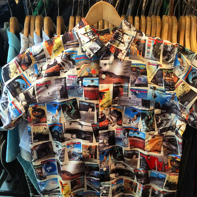 こちらはMATIXのアロハですよ。よく見ると往年のスケートマガジンのカバーがグラフィックになっております。SKATEBOARDER。こういうのサラッと着れるとかっけーす。