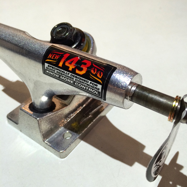そしてこちらはTHUNDERの143であります。これまたかなり画期的。このサイズはTHUNDERの最小幅になります。用途はもうクルーズですね。幅で言うとINDYの109に近く、ACEの00と11の間くらいすね。クルーズデッキで言うと7.75から8.0くらいのクルーズデッキにOJ HOTJUICEとかビシッと来ます。SPITFIREのソフトウィールをZIPZINGERに合わせるのとかも素敵です。セッティングの旅は果てしないので色々お好みでセッティングしてみてください。クルーズ好きな方たちはセッティングの幅が広がってよかったすね。吉祥寺にも浦安にもスタンバッております。