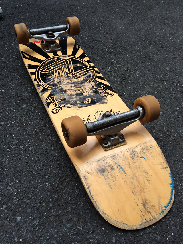 こちらは先日、吉祥寺ストアに寄ってくれた。JETZ森のセッティング。僕はテッチャンって呼ぶほうが慣れておりますのでテッチャンで行きます。テッチャンとはもうスケートボードを初めてすぐからのご縁ですので30年物。思えば時間が経ってますな。当時、綺麗なミニランプって近所になくて、テッチャンが働く鴨川のショップまでタクちゃんやダイコンやワタルらと通っておりました。テッチャンはいつ遊びに行っても笑顔で迎えてくれて一緒に遊んでくれました。TOKYO-Z BOYSを結成して代理店業を始めてからもいつも税関にピックアップした帰りに寄ってくれて最新デッキをチェックさせてくれました。業界の先輩とかじゃなくて常に良き兄貴でありました。今もそう。僕もなんかあると真っ先に相談しちゃうし。おっと脱線。セッティングまったく関係ないっす。デッキはこちらわかります?Zのブッチ大先生でありますよ。今はブッチがZをハンドリングしているそうですね。70年代にぶっちぎりでカッコよかった映画にもなったDOGTOWN&Z BOYSですが、僕にとっては一番カッコよかった時はこのブッチやジョージやジミーやパット、そして水野が居たZ-BOYSなんすよね。平べったいレールバーのZ-SKINSとか画期的でした。デッキは9.0インチ。さらに画期的だったのが当時、物議を醸し出したZ-ROLLERであります。