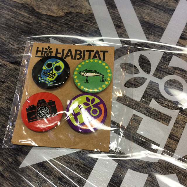 こちらは大増量されたセールデッキからHABITATのデッキです。現在6000円+TAXでご紹介しているBUTTONシリーズにはこの缶バッチセットが付いてきます。みんなルアーのバッチにグッと来てるみたい。僕はカメラのバッチにときめきました。Rioくんもね。こういうオマケってなんか嬉しいよね。HABITAT、Alien Workshopはブランドがなくなってしまうかも。今までも色々な栄枯盛衰を見てきましたがAWS無くなっちゃうのはかなり寂しい感じっす。