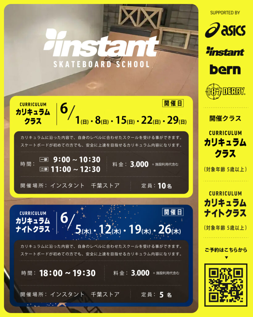 今日は天気良好でスケート日和でしたね!!6月はそろそろ梅雨時期で雨の日が多いですが、MIYASHITA PARK SKATEBOARD SCHOOLと千葉みなとスクールは6月も楽しく開催です❗️