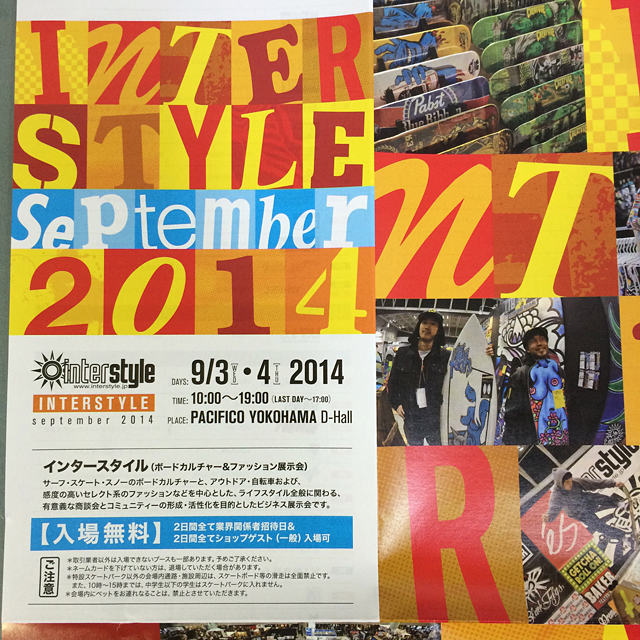 で、こちらのインタースタイル。僕ら世代のスケートボーダーにとっては合同展示会という側面と、年間二回の同窓会のような側面があります。何年か前まではコンテストがライダー達やスタッフの集合場所で、そこでみんなお互いに生存確認が出来ておりましたが、ここ最近はスケートシーンが急激に変化したのもあってコンテストというよりはこういう場が全国的にライダーや関係者が集る貴重な場になりました。