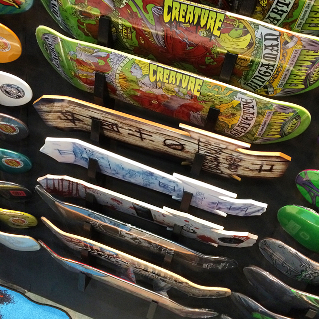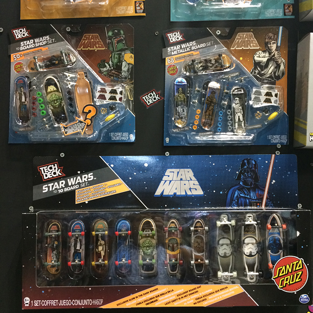 こちらは年に二回のキッシャンに会いに行ったハスコのブースで見つけたイカレポンチであります。CREATUREのデッキですが、シェイプがすっごくカッコいいのですよ。刀剣です。でもね、よく見るとこのコンケーブって・・・。そう。逆にコンケーブがついている。ノーズを下げるかテールを下げるかは乗る人が決められるようにスペック的にはツインテールになってるの。謎。個人的にはシェイプがすっごくグッときたので普通にノールとテールにキックつけてリリースしてほしいのよ。そうそう。SANTACRUZのSTARWARSシリーズもそろそろ第二弾がリリースになるので、特にブリスターパック永久保存版をご希望の方はお見逃しなくね。