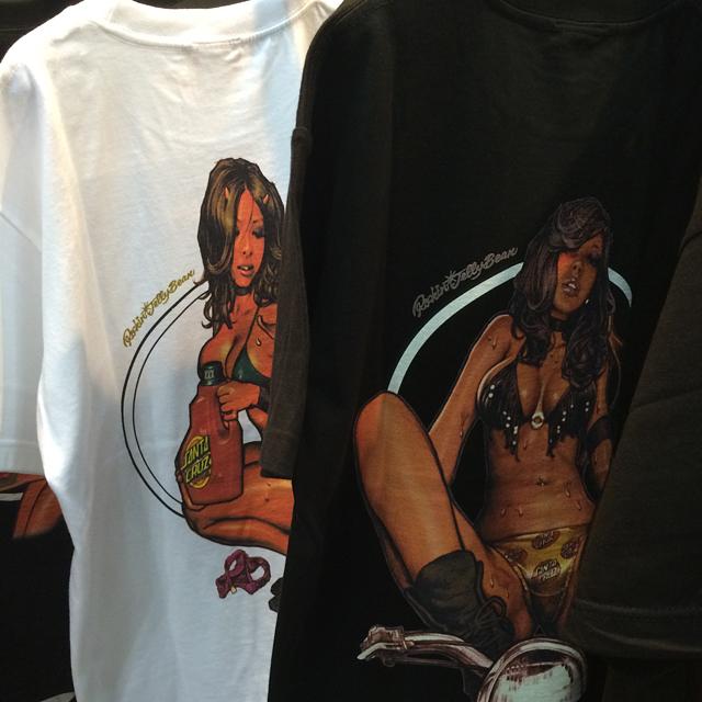 こちらはSANTACRUZのRockin Jerry BeanのTシャツですよ。デッキは先日ご紹介してすっごく人気であります。まだ少しあるのでチャンスを逃さないようにね。Tシャツだとデッキで削られた部分のグラフィックもわかるのですごくいいすね。僕欲しい。気になる方はご相談下さい。