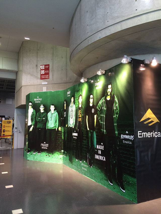 先日、自分もホンマさん、サトルさんの記事にあったインタースタイルにバイクで行ってきましたよ!今回、自分は在庫確認や注文をしたりして普段からお世話になっている各代理店の担当者の方にご挨拶をするため、ホンマさんと各代理店のブースを回り担当者の方を紹介してもらいました!初日である3日の午前中に行ったので、比較的人が少なくスムーズに回ることができ、2時間で各代理店に挨拶が終了。なかなか緊張する2時間でした。笑 ホンマさんの記事にも載ってますが、ブースを回っている途中で、自分の大好きなSHAKE JUNTのライダーであり、自分のスケートのお手本の一人であるBraydon Szafranski先生に遭遇し、記念撮影をお願いしてしまいました!!!!汗 入り口のEmericaの広告は思わず写真を撮っちゃいましたが、もう少し正面から撮れば良かったと後悔してます。笑