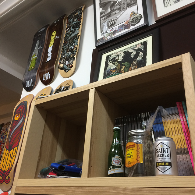 KUKUNOCHIさんの事務所で商品をチェックしていると大好物のビールを頂きました!ビールは大好きなのですぐに飲みたかったのですが、バイクで来ていたので自宅に持ち帰り、現在もまだ飲めていません。涙 キンキンに冷やして、グラスに注いで飲みたいですね。今回頂いたのはSaint Archerというサンディエゴのクラフトビールです。詳しく調べたらプロスケーターのポール・ロドリゲスやマイキー・テイラーをはじめ、アクションスポーツ界のスター達がみんなで出資して設立したビールのブランドでした。ブロンドエール、ペールエール、アイピーエー、ホワイトエールと4種類もあり、全種類飲んでみたいですね!!ナガノトレーディングさんという会社が日本にビールを仕入れているそうなので、気になった方も探して飲んでみてはいかがでしょうか?自分も頑張って探したいと思います。写真右下の銀色の缶がSaint Archerです!缶のデザインもシンプルでカッコイイ!ちなみに頂いたのはブロンドエールです。