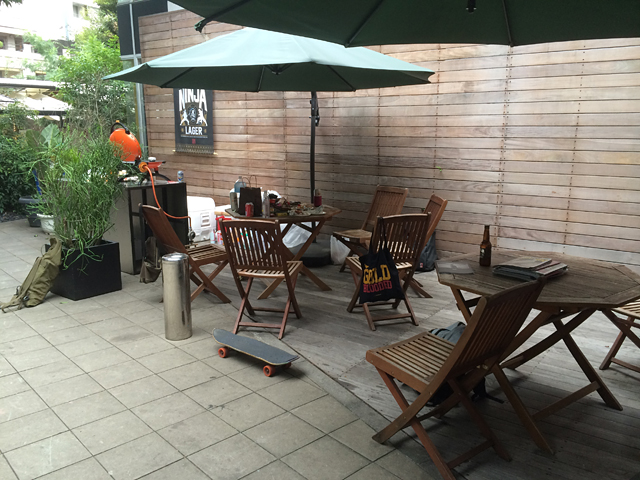 展示会場では、普段EvisenやTightboothをオーダーする時に対応して頂いている担当者の方にご挨拶をしたり、今年の3月に大学の卒業旅行で東北に行った際にすごくお世話になった仙台のマルさんにも会ってきました!デッキや秋冬物の商品のチェックをしたり、BBQグリルで焼いたソーセージなどを外のベンチで頂いたり、とても楽しい時間を過ごす事ができました!場所の雰囲気がすごくよく、ベンチに座ってのんびりしたところ、気付いたら2時間ほど滞在してしまいました。笑 静岡もそうですが、仙台にも年内にもう1度行く予定です!!
