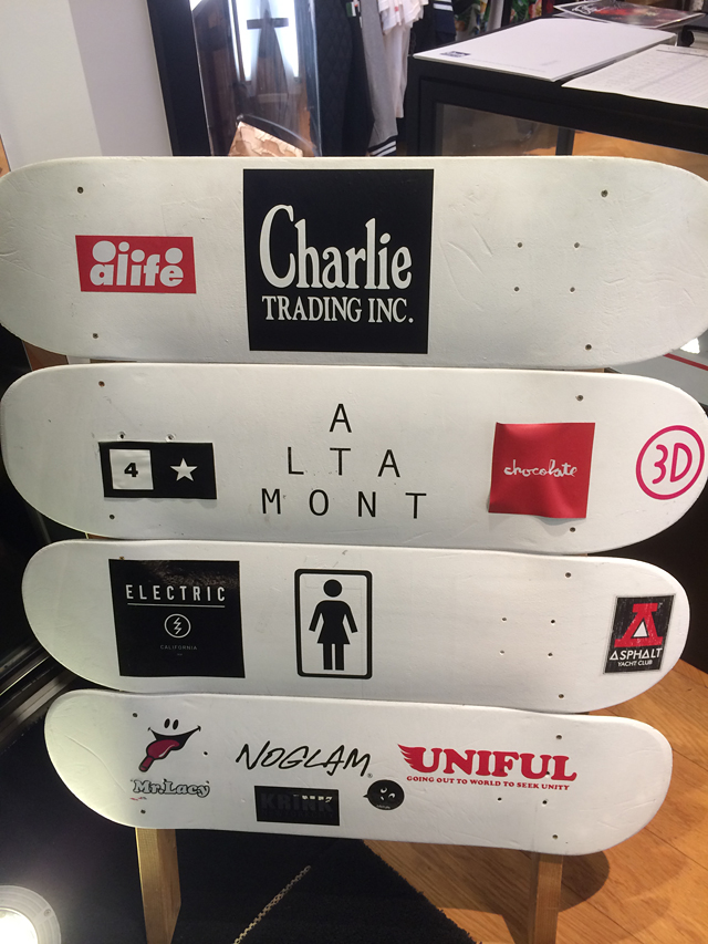 Evisen&Tightboothの展示会のあとは、すぐ近くにあるチャーリートレーディングさんの事務所にご挨拶に行きました。到着した時間も遅かったのでご挨拶をし、サクッと秋冬物のアパレルや、話題のWelcome Skateboardsのデッキをチェック!22種類のシェイプがある事は知っていましたが、本当に色々な型があってビックリですね!ノーズの少し尖ったシェイプの板とか、お尻に刺さったら大変なので常に集中して乗れそうですね。笑 こんな感じで、2日間をかけて久しぶりに色々とことに行き、バイクで移動した距離はなんと約150kmです。笑 さまざまな代理店の担当者の方にご挨拶ができて、とてもよいキッカケになった展示会でした!