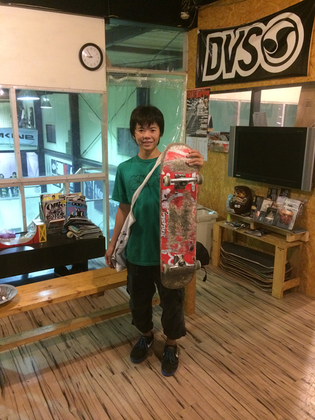 2つ目はFUG!この前の木曜日は仕事が休みだったので、いつも滑るスケーターと4人で行ってきました。この日も朝から雨だったので、車で連れてってもらいました。昼過ぎから夜までガッツリ8時間くらい滑っちゃいました。フラットに、カーブに、ランプにいろいろやりましたが、相変わらず路面が好きです!!夕方、学校終わりのシュンペイ少年とまさかの遭遇。思わぬ場所で、思わぬ遭遇し、テンションが上がりましたねー笑 記念に1枚!笑