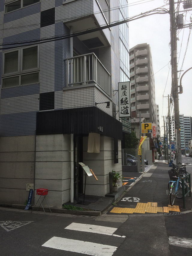 こちらが相当美味しいつけ麺屋になります!店の名前は『麺屋 緑道(エンドウ)』、店は門前仲町が最寄です!浦安のインスタントからは、葛西橋通りをひらすら東京の方に行けば永代通りにぶつかる手前、首都高の下を通り過ぎれば左側に見えてきます。バイク、自転車は店の横に停められて、近くに駐車場もあります。こちらの店長とは、もともと自分の地元にあるつけ麺屋で店長をされていた頃からの知り合いで、かれこれ3年近く店長の作るつけ麺を食べています。笑 その地元のつけ麺屋から独立し、今年3月に緑道がオープンしました!