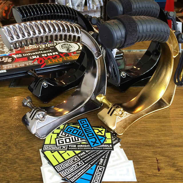 そしてこちら。これなにかわかりますか?これはGoProって高性能な小さいカメラでスケートボードのライディングを撮影するのに使うハンドルです。この形状がスケートボード撮影にはスタンダードな感じで下からのアングルを撮影するのに向いている。GoProってカメラも新しい機器なんで馴染みがないかもしれませんが、これ僕も使ってみて驚いた。映像が綺麗。そしてこのハンドルはGoPro専用なのであります。USのGOWORX社製のこのハンドル。日本ではインスタントが正規ディーラーとして販売させてもらってます。スケートボードショップやスノーボードショップ、もしこのハンドルが気になって取り扱いたいって方がいらっしゃいましたらお気軽にお問い合わせください。