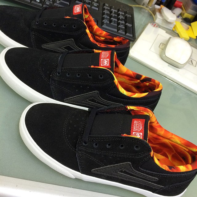 そしてこちらはキッズサイズのLAKAI×SPITFIREのシューズであります。最近はキッズライダー達の足元は完全にスケシューになりました。ちょっと前まではキッズサイズのスケシューはなかなかご用意できなかったのですが、最近ではこのLAKAIやETNIES、NIKE SBなんかでキッズシューズがお選び頂けるようになりました。このLAKAIは20,21,22cmでご用意できます。キッズサイズのスケシューはそれでも市場にあまり出ないので、グッとくるのを見つけた時にキッチリとゲットするのがいいでしょう。