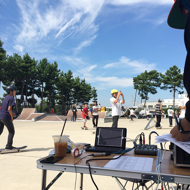 週末は浦安ストアがある地元の塩浜スケートパークでAJSAアマチュア関東サーキット最終戦が開催されました。AJSAはオープンクラスのMCをさせて頂いておりますが、この塩浜のコンテストだけはアマチュア戦の決勝のMCを担当させて頂いてます。ここ数年毎年シーンの激変ぶりに驚いてますが、また今年も驚いた。だってみんな上手いのよ。ローカル大鳳も奈生も予選を突破して決勝に進んでかなりグッときました。一番驚いたのが前々日まで降雨確率60%だったのに当日のピーカンっぷりがハンパなかったこと。