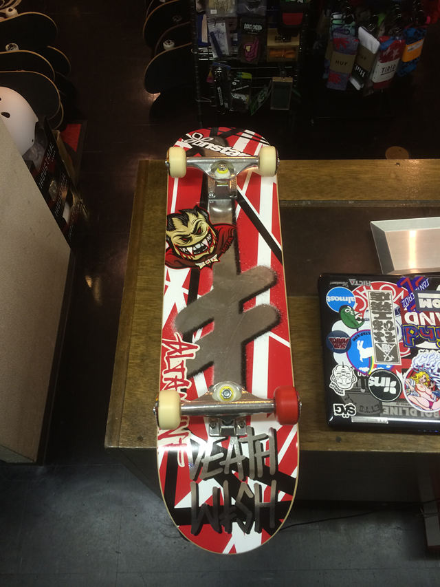 週末はコンプリートを組んでいかれる方が多く、自分の大好きなDEATHWISHでコンプリートを組んでいかれるお客様もいましたよ!パーツ選び、全体のカラー、ステッカーの貼り方、全て最高です!あー、自分も早くデッキ換えたいな!笑