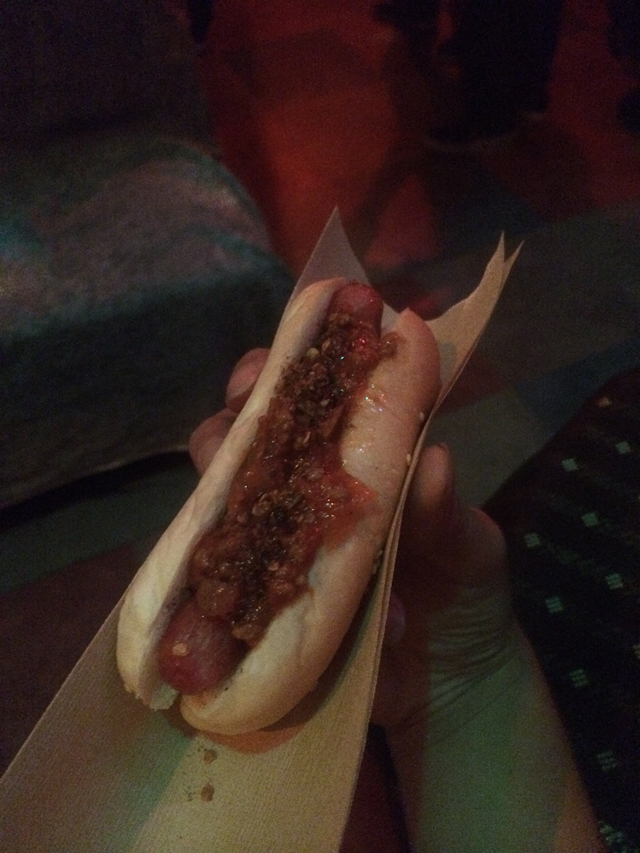 会場ではホットドックも販売されていましたよ!晩御飯を食べた後だったのですが、ホットドックも美味しくいただきました。辛めのホットドックを食べたのですが、辛いのが苦手な自分でも食べることができて、このホットドックでお酒が進んでしまいましたね~笑 次回のイベントでもホットドックを食べることができると思うので、まだ食べたことのない人は次回是非食べてみてください!次は違う味のホットドックを食べたいと思います。むしろ晩御飯を食べないで、ホットドックを晩御飯にしようかと思っています。笑 とにかく美味しいですよ!!!