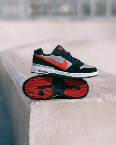 ブラックとミディアムグレーを基調に、ユニバーシティレッドのスウッシュや差し色をプラス。2005年当時のシルエットや雰囲気を忠実に再現しつつ、現代的な快適性を備えています。ボリューム感のあるシュータンやキルティング仕様のヒール、Zoom Airを搭載したソールなど、機能性とクッショニングは健在。スケート時のフィット感と耐久性を高次元で両立。