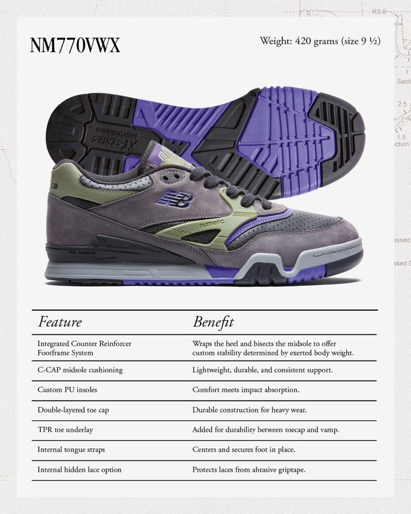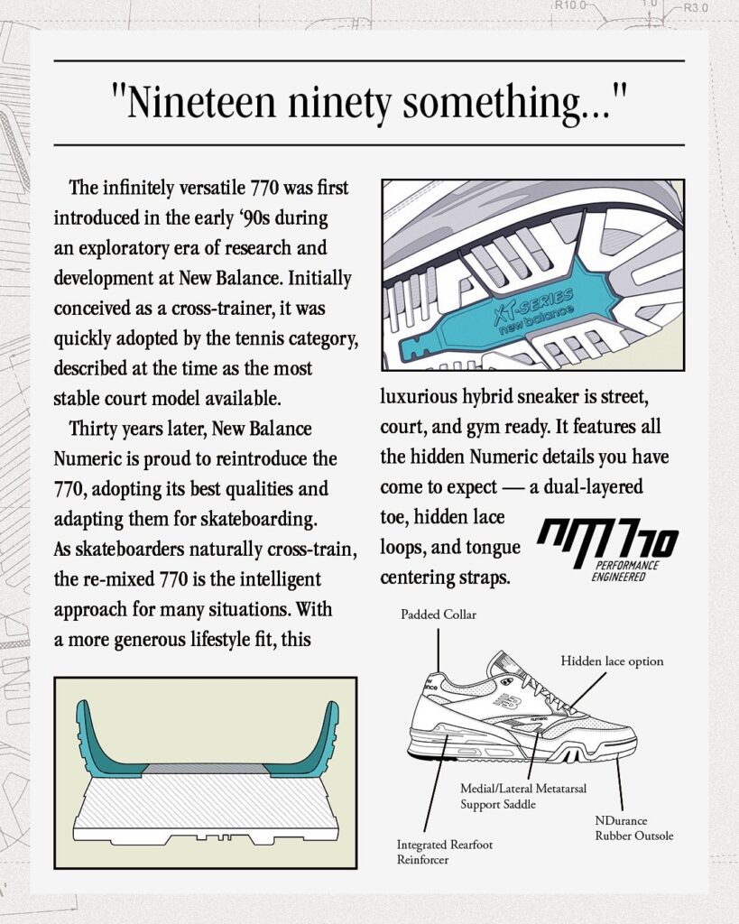 New Balanceのクラシックなクロストレーニング & テニスシューズを、スケート仕様にアップデートした「770」が登場。
