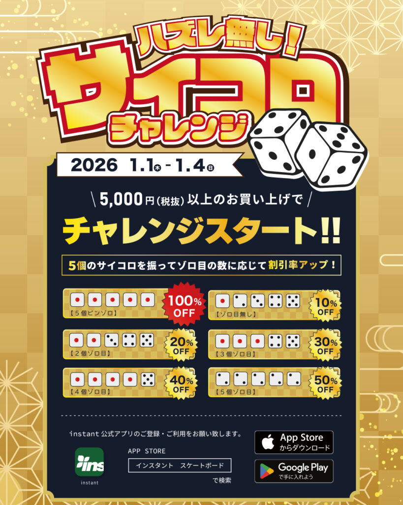 2026年もインスタントは皆さまと一緒に、スケートボードの楽しさを全力で発信してまいります。新しい一年の始まりを皆さまと分かち合えることを、スタッフ一同とても楽しみにしております。ぜひご期待ください!