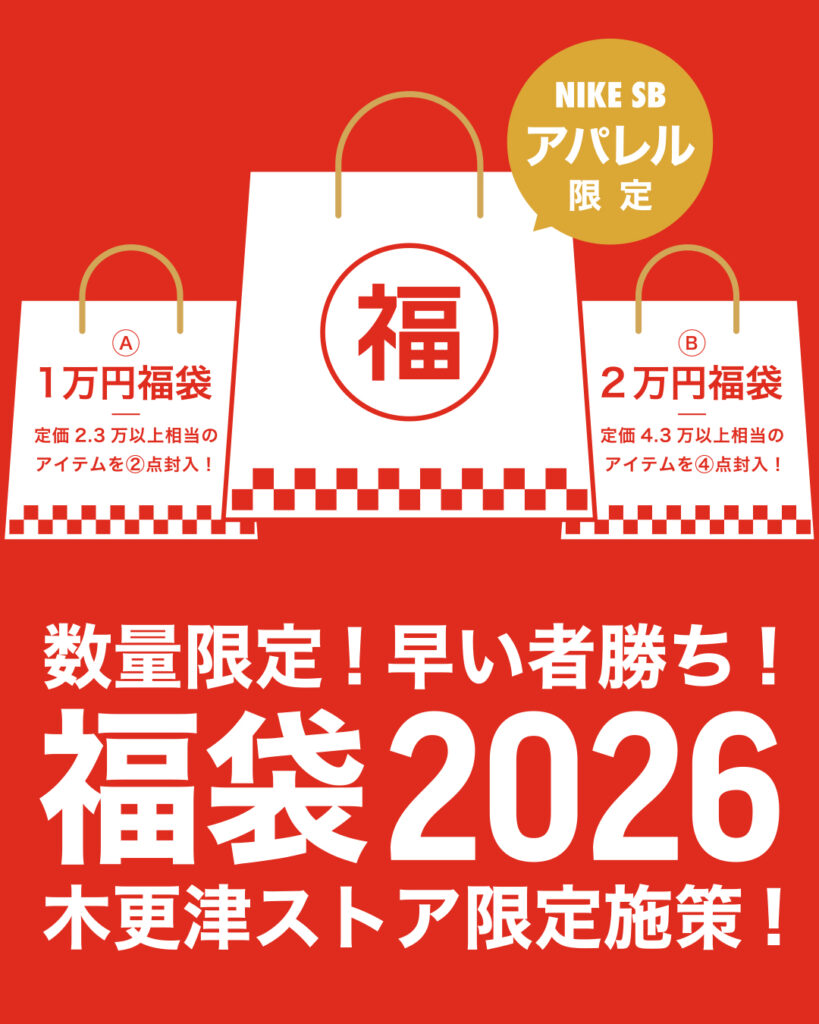 木更津ストアお正月限定の Nike SBアパレル福袋(1万円/2万円) を同時購入で、割引が+5%UP の“追いブースト”も💥