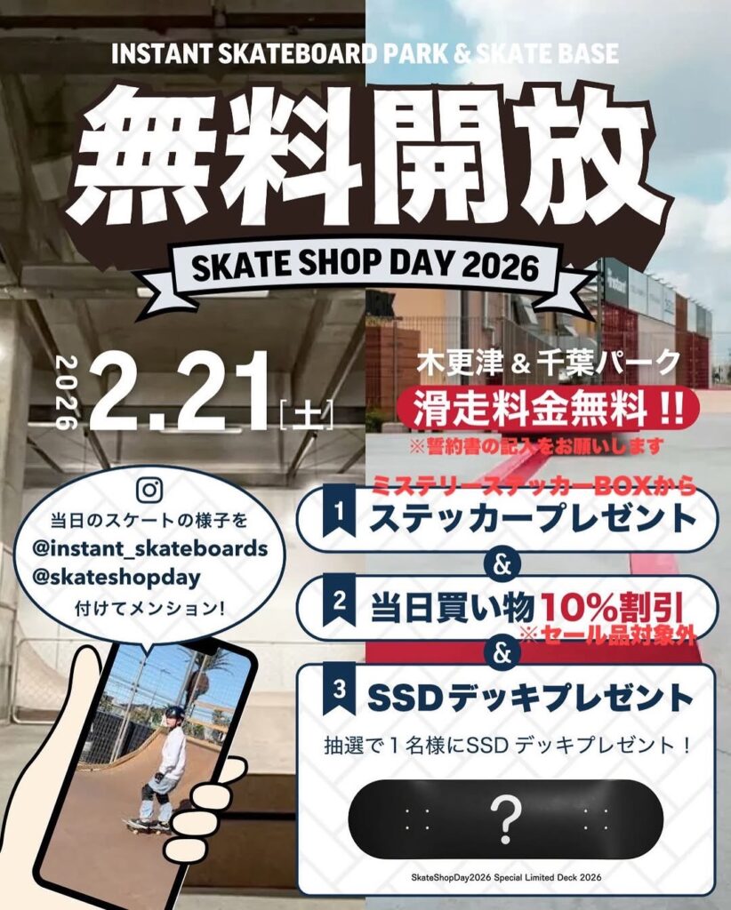 企画1|パーク無料開放!Skate Shop Day 2026!【千葉ストア&木更津ストア限定企画】