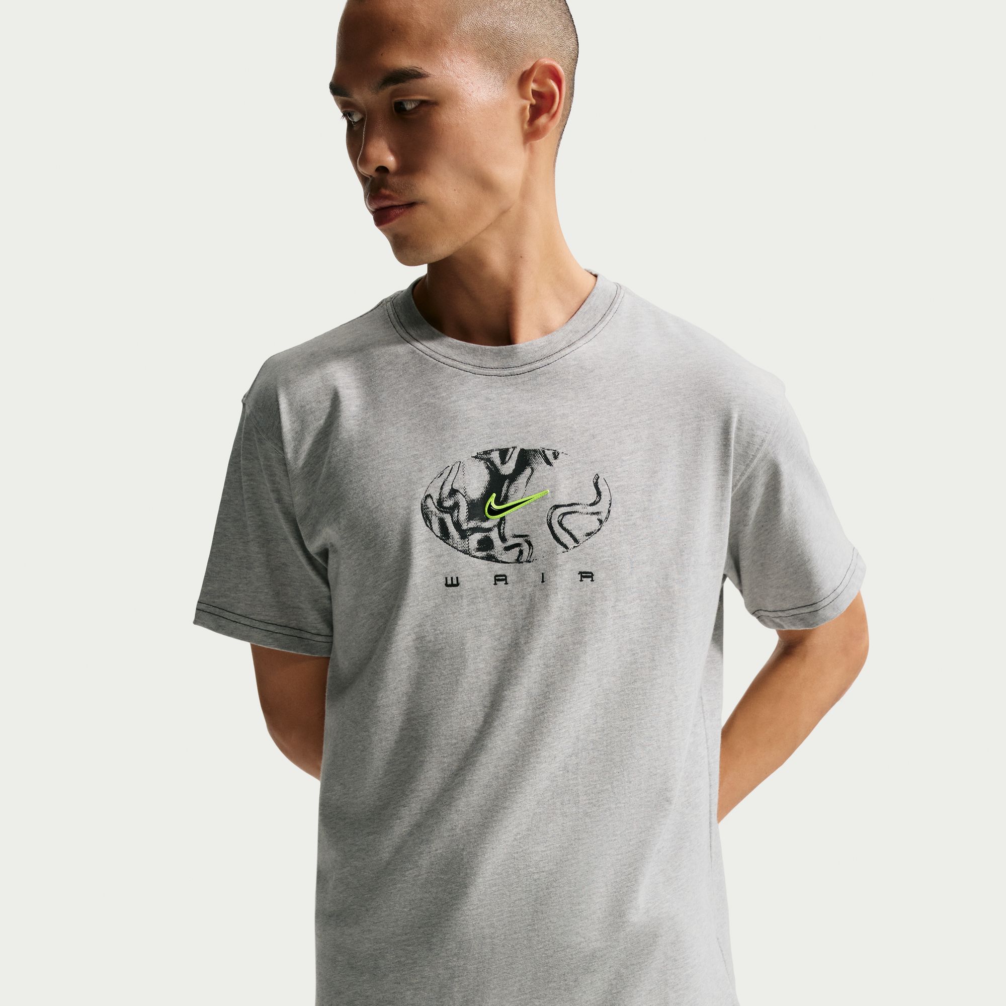 ミッドウェイトのコットン生地を使用し、ソフトな着心地とデイリーに使いやすい耐久性を両立した一枚です。ドロップショルダーとゆとりのあるシルエットが、リラックス感のあるレトロなムードを演出。スケートシーンはもちろん、タウンユースにも取り入れやすく、Ishod Air Max “OG Neon”の足元と自然にリンクするデザインに仕上がっています。ルーズフィットで動きやすく、1枚でもインナー使いでも活躍する、汎用性の高いTシャツです。