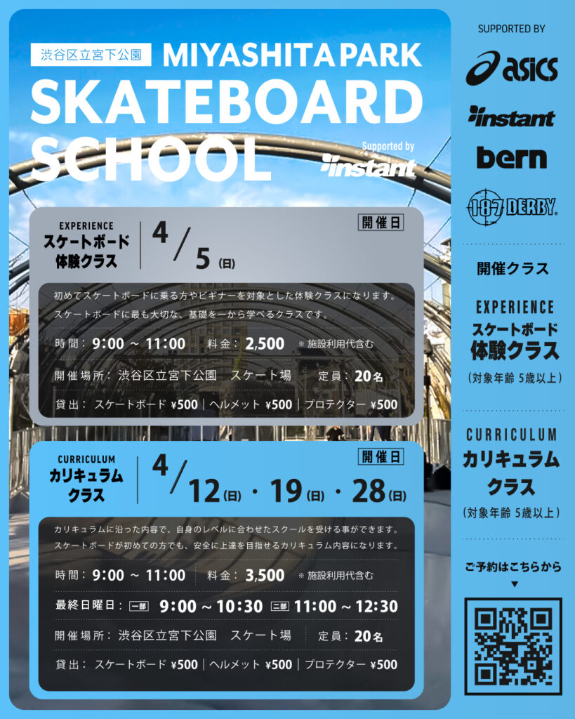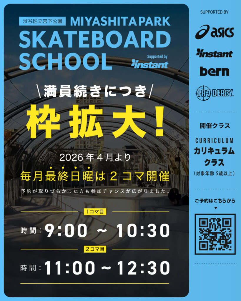 ▶渋谷宮下スクールの詳細やご予約はこちらから→【ご予約専用ページ】https://instant-skateschool.jp/shibuya/