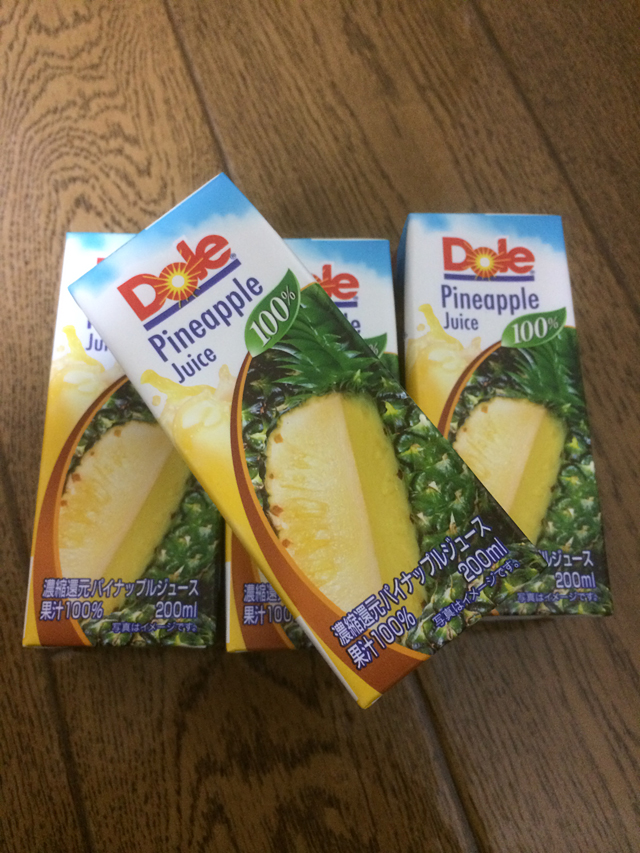 』という情報を見てしまったからです。笑 まだ自分は風邪で体調不良になっていないので、実験できておらず、本当に効果があるのかは不明ですが、研究結果も出ているみたいなので、期待が高まりますね。笑 ということで、昨日スーパーに行ったらパイナップルジュースが置いてあったので、4つも買ってしまいました~笑 もし、風邪で困っている方がいたりしたら、パイナップルジュース療法をぜひ実践してみてくださいね~ そして、効果の報告をお待ちしてます!笑 自分も風邪をひいたら実験しますので、結果をお楽しみに~