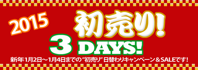 本日、1月2日より初売りとなります。本日から2015年初売り3DAYSを開催致します!何がセールになるかはその日になってからのお楽しみです。