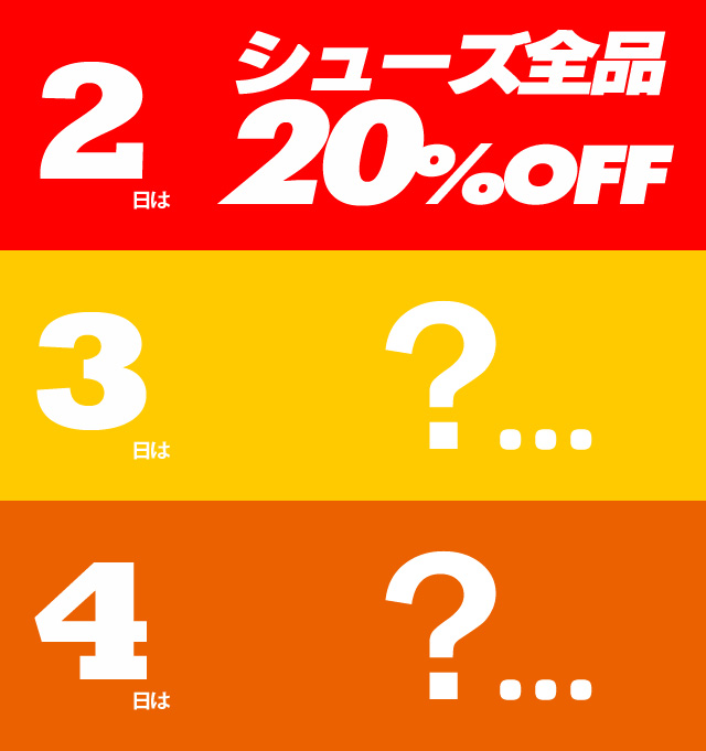 初日のキャンペーンは、なんと『シューズ20%OFF』でございます!