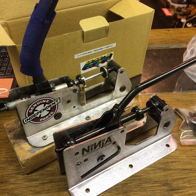 新年モードの勢いで浦安ストアのベアリングプレスを新調しました。これはウィールにベアリングを装着したり外したりする工具なのですが、これがあるのとないのは大違い。もう古いのはベアリングに引っ掛ける爪が丸くなって使えなくなってました。やっぱり新品っていいね。