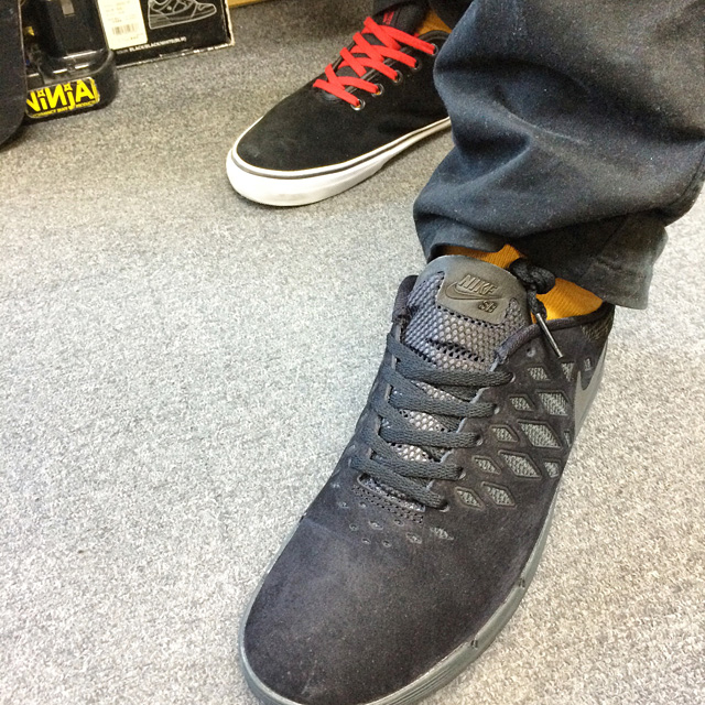 最新アイテムはものすっごく気になります。先日リリースされたNIKE SB FREEを常連さんがご購入されまして、さっそく質問攻めであります。幅はどう?ソールの感じは?薄くない?とか色々聞いてイメージをつかみます。自分で全部履ければお客様へのご説明にキッチリ活かして行きますが、まだ履いたことないシューズを見ると質問攻めでイメージします。ま、たぶんこれはすぐに買っちゃいそうですが。