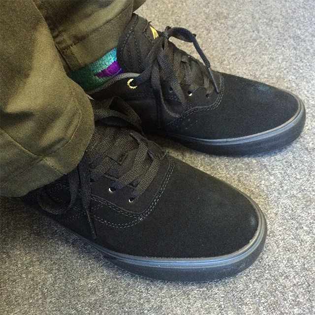 靴ね。僕はその時その時で最高に調子良いと思ってるアイテムがころころ変わるタイプ。今まではずっとカップソール派だった僕もある日出会ってしまいました。以前譲り受けたEMERICAのHERMAN VULC。キャッチしてからズゴーンってやっちゃう僕は靴のクッション性はかなり重要視しています。膝と腰が痛くなっちゃうからね。VULCよりカップの方が物持ちも良さそうだしカップしょー!と思っていたのですが履いてビックリ。あのビタビタ感にやられましたね。やっぱこれだー!みたいな感触を僕は何回ループしているのでしょうか。カップ、バルカ、カップ、バルカ。次はいつカップ最高ー!とか言い始めるのかな。俺の最高に尊敬するBryanHermanのモデルなんだからまず間違いない。最高に決まってるんだよねこの靴は。調子良すぎて3足目のおかわりです。