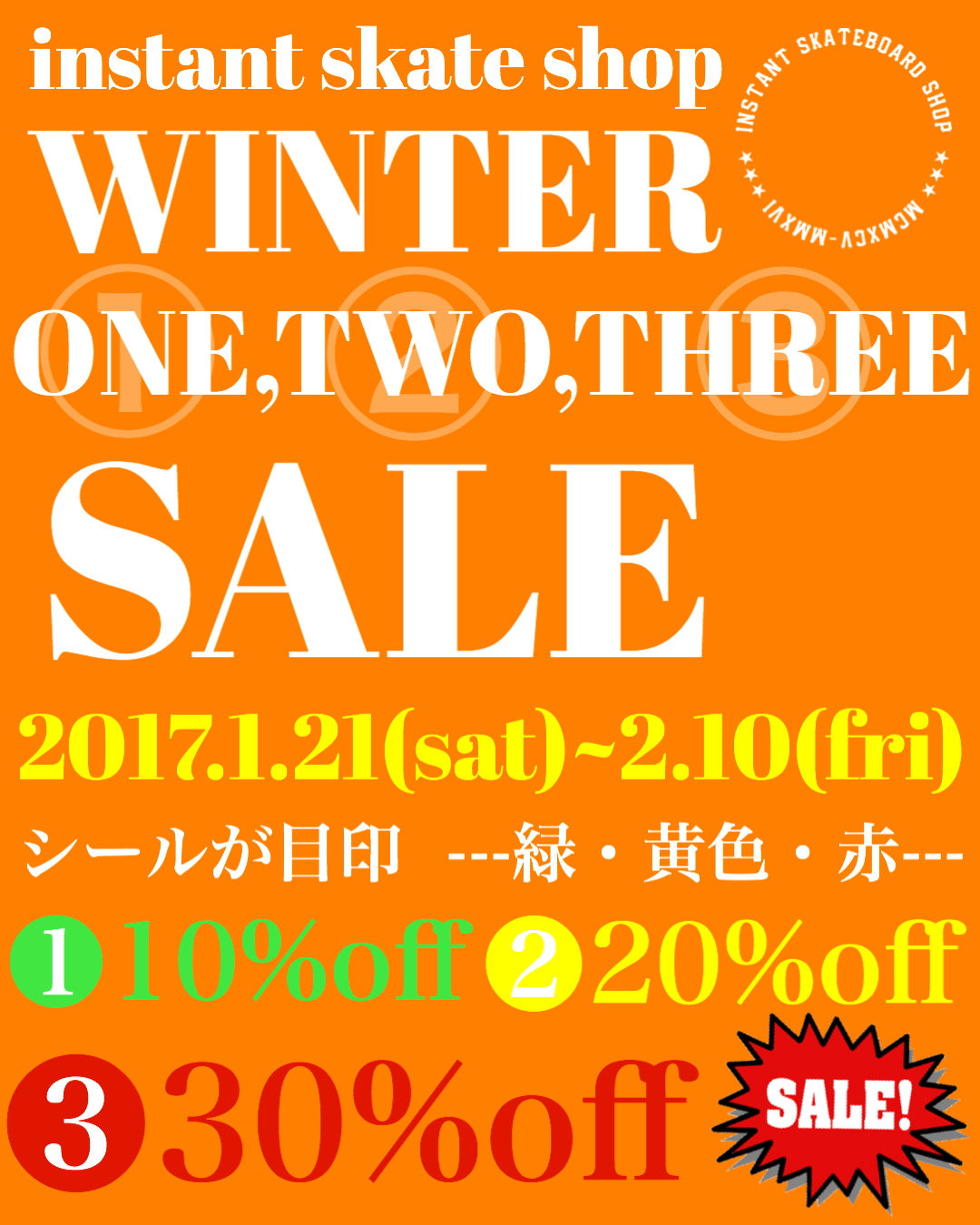 インスタント全店でONE,TWO,THREE WINTER SALE 開催 1.21(SAT)~2.10(FRI)