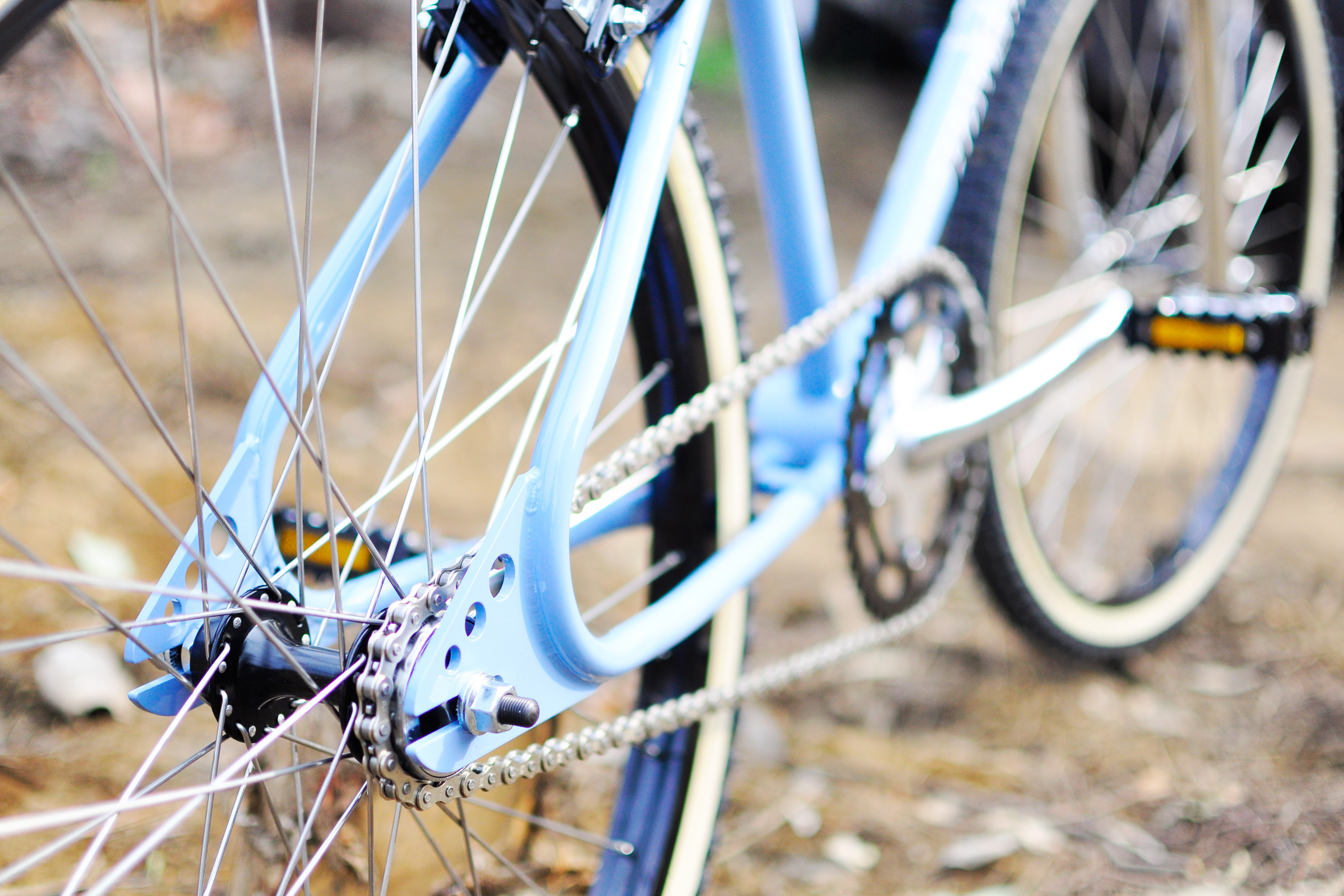 ★ブレーキ、ブレーキレバー、ハブ、リム、ステム、チェーンリング、ペダルをブラックアルマイトにしました。