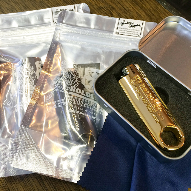 こちらはBOLDLINEの新作TOOL。もうこれは完全にTOOLの域を越えちゃってます。ブリンブリンです。BIGのミニがスポット入るライターでキングピンの調整ができるTOOLなのですが、これを持った時の重厚感って言うか充実感というか、なんか何かが満たされる感じがします。ま、使ってみてください。このゴールドのはMASTERGRADEってBOLDLINEのMFG魂の結晶である最高グレードのアイテムであります。限定生産の少量入荷アイテムであります。