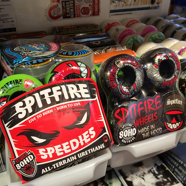 ウィールも新型色々リリースされております。最近はクルーズが需要が高く、色々なモデルが続々とリリースされております。サイズやカラーが色々選べるのはうれしいすね。SPITFIREはやはり一番人気であります。