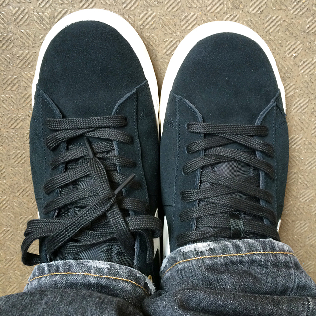 自分へのご褒美にシューズを新調しました。BLAZER GT。これ欲しかったのよ。履いてみたらやっぱり予想通りの履き心地。すぐ慣れる。指でつかめる感じ。これ3足くらい買っておきたくなりました。そしてGTはシューレースがちゃんと通してあるのよ。NIKEをよく履く人はご存じの「一番下だけ逆通し」現象がない。これだけでかなりポイント高いっす。ちなみに「GT」はGRANT TAYLORの略ですが、SSPではGREAT TEACHERと呼ばれてます。RAD龍はがんばれタブチくん、と言ってました。ま、たしかにGTだけどね。