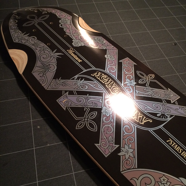 こちらはブラックです。ブラックにはブラックのプリントです。漢です。先日RAD龍が着てるのみてグッと来ましたよ。感慨深い。本当にみんなにお世話になり、沢山の方のご協力があり、全てのお客さまのおかげさまで今がある。みなさんに生かされて今日もまたスケボー屋をやっていられる。ありがたいことです。