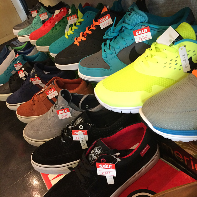 セールシューズもドカッと増量されました。セールシューズはサイズバリエーションが少なめですが、サイズが合えばかなりお買い得であります。全部チェックしてみてください。おススメはhuf。普段ちょい高めな気になるシューズもセールだったら思いきれるでしょ?