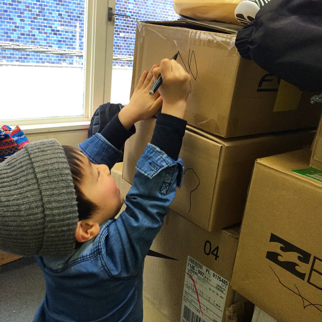 ローカル恭平の長男もすっかり大きくなってるわ。最近ちょっと慣れてきて、普通に遊んでくれるようになりました。先日は「紙とペンくれ」って言うので、メモ帳がなかったのでペンだけ渡して「その辺の段ボールに描いていいよ」って言ったら、ニコっと笑って描きだした。もう並んでいる段ボール全部に描かないと気が済まなくて、奥の方に積まれた段ボールにもbombしてました。いいね、溢れ出してる。また子供になってやり直したい事いっぱいある。