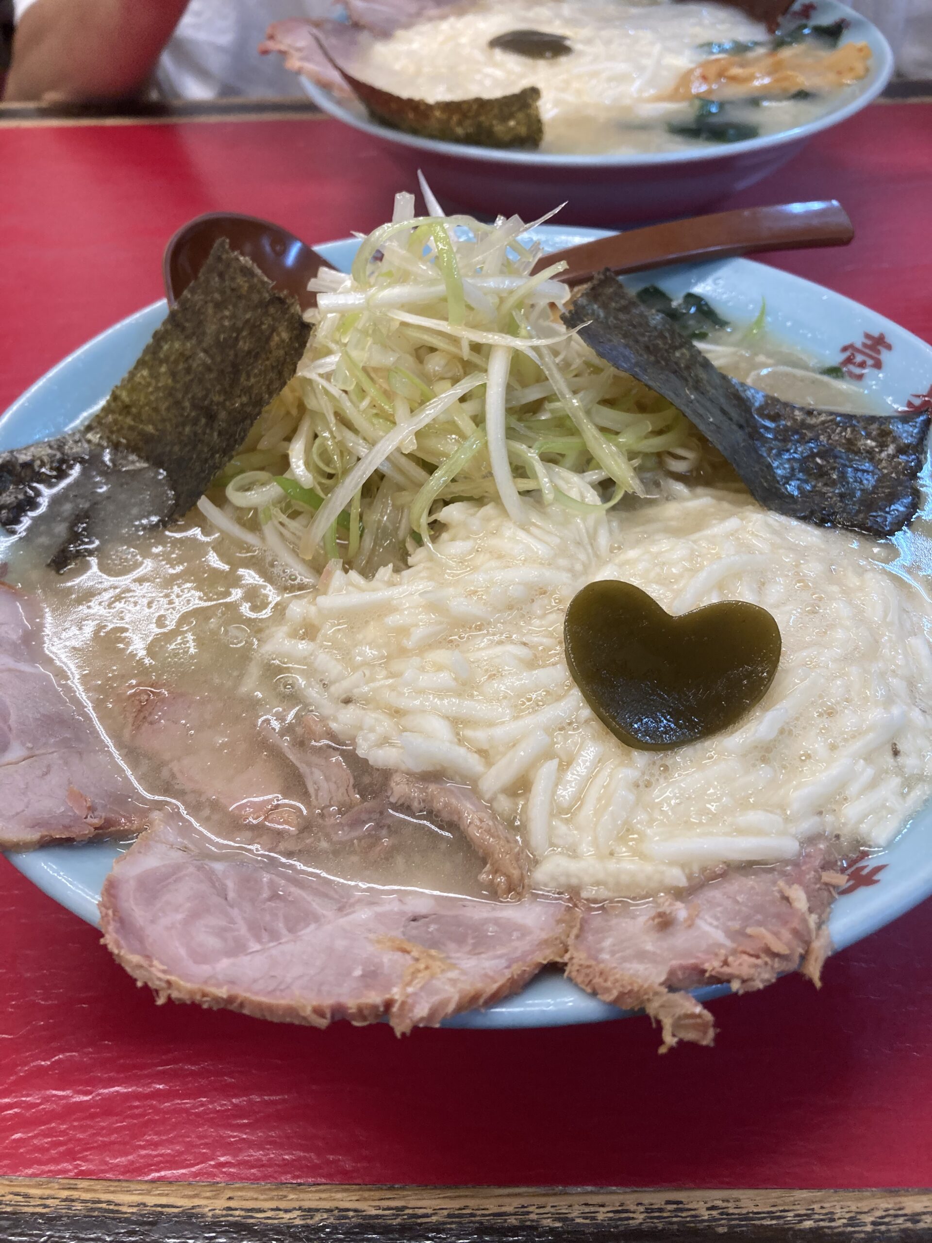 とろろがラーメンに乗っているなんて、、そしてハートなんか乗っちゃって