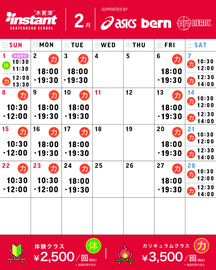 2月の渋谷宮下・千葉みなと・木更津スクールの詳しいスケジュール・ご予約の手順は、